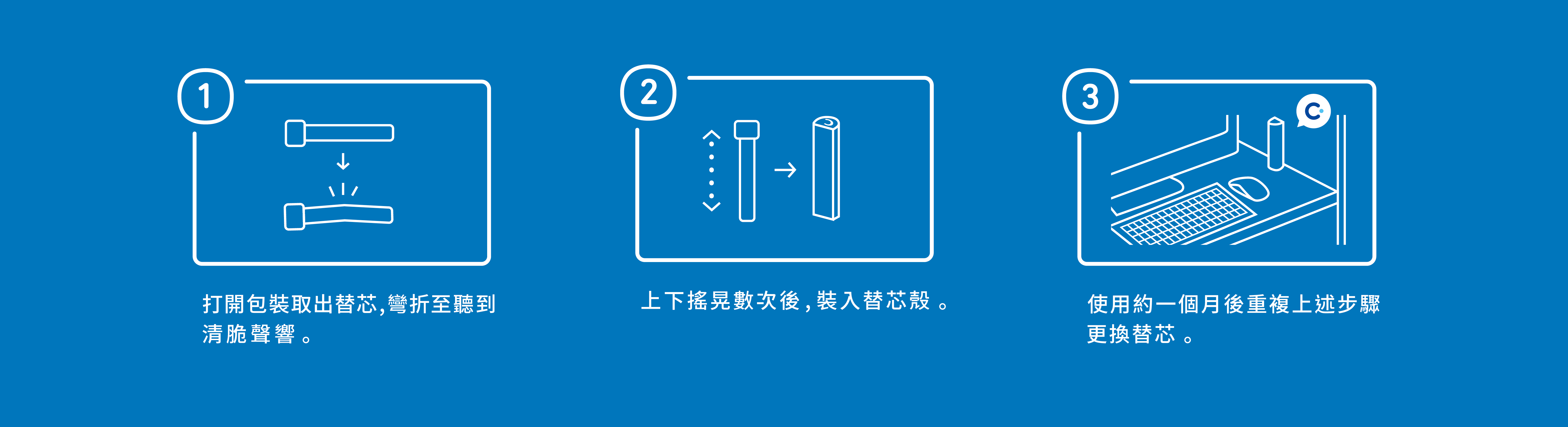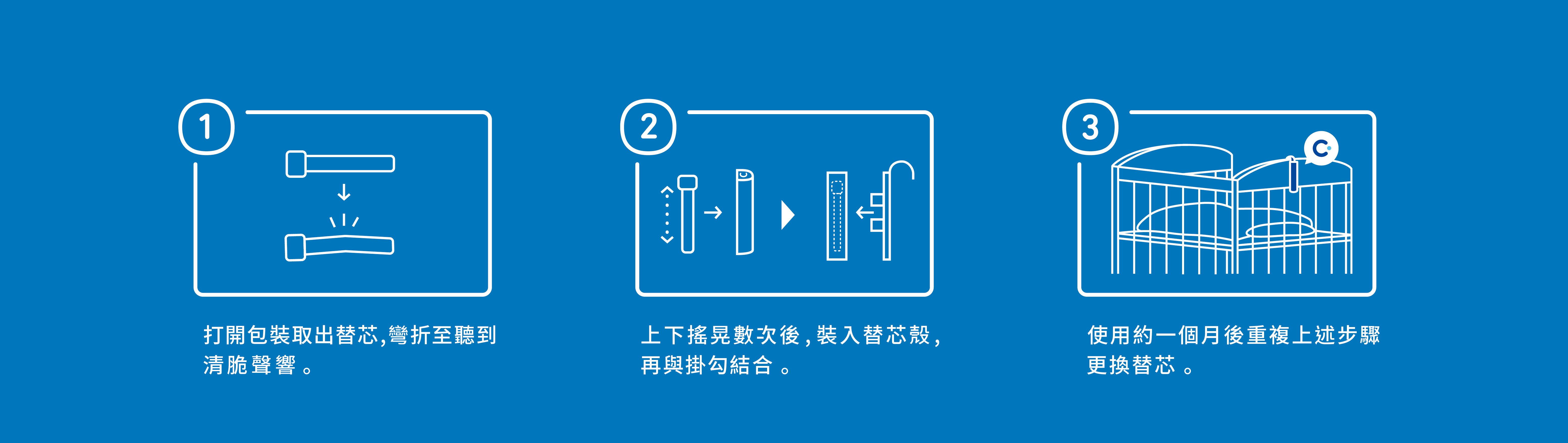 使用一個月後重複上述步驟更換替芯。